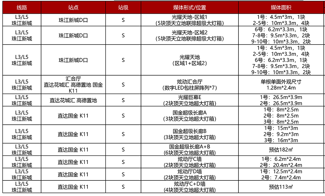 该广告牌位广州天河区珠江新城D口花城广场出入口处,是珠江新城CBD人流最密集最核心交通出入口,珠江新城是广东著名CBD商务区,汇聚诸多高档写字楼酒店、金融机构、豪宅楼盘,广告周边有花城广场、花城汇、高德置地广场、广州国际金融中心、周大福金融中心、K11广场、友谊商场、广州政务中心、广东省博物馆、广州大剧院、广州图书馆、广州少年宫、花城广场、海心沙、广州塔、合景国际金融广场、富力中心、富力盈凯广场、南岳大厦、侨鑫国际金融中心、雅居乐中心、珠江投资大厦、国门酒店、卓美亚酒店、广州妇幼儿童医院、全球通大厦、美国领事馆和地铁珠江新城站等。珠江新城CBD被誉为广州新城名片,广州城市会客厅,环境优美,地标景观林立、汇聚来自世界游客,商业氛围浓厚。珠江新城是广州人流最大地铁3号线与5号线交汇换乘站,广告地处珠江新城最繁华地铁出入口,是品牌宣传的理想位置,是品牌在广州品牌宣传非常难得黄金理想阵地。
